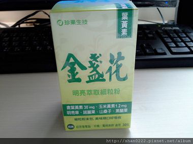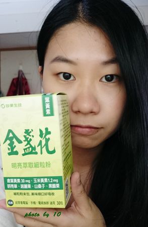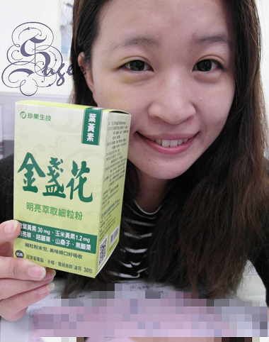 謝謝【女人知己試用大隊】提供的–《珍果》金盞花萃取物明亮細粒包的試用 因為本身鼻樑左右邊高低不平均...所以平常在學校使用有框眼鏡的我在出社會之後就長期使用隱形眼鏡...也因此得了所謂的乾眼症...所以眼科醫生希望我調整一天配戴隱形眼鏡的時間...然後搭配一些點眼藥劑和口服藥錠...不過使用三個月之後情況並沒有變好轉...因為才轉而投向保健食品的懷抱...但有時候各個品牌品質掺雜不齊...或是不見成效...就會讓我有一段時間很想放棄保健食品...而且一段時間就會有新的成份被開發出來...好奇心強重視新鮮感的我又會想要嘗試看看新的東西... 先說明一下我目前的狀況...我是一天工作必須要配戴最少八小時的隱形眼鏡...平常我都會隨身攜帶一副新的隱形眼鏡備用...應付突然的三小時加班或是突然的眼睛不適...有時候一到中午時間覺得今天的眼睛狀況不好...我是會丟掉早上的隱形眼鏡休息一個小時半...再重新換上新的隱形眼鏡使用