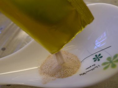 ▲期待的撕開封口處,終於能看到金盞花萃取物明亮細粒包的真面目了