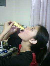 咦! 味道還不賴耶! 酸酸甜甜的, 根本就沒有那種讓以諾麻害怕的藥味呀! 反而還是以諾麻喜歡的酸V啊~酸V口感, 真是太讚囉!