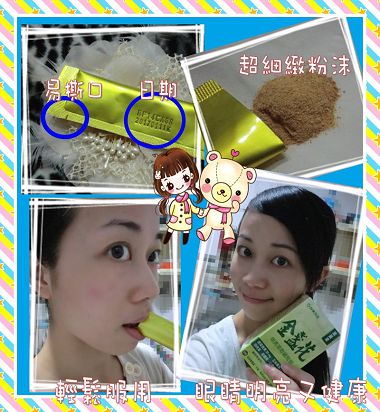 謝謝【女人知己試用大隊】提供的–《珍果》金盞花萃取物明亮細粒包 看到盒子上寫著 適用長時間看電腦~電視~公文族群 其實應該還要追加的就是手機~平板... 我現在每天一起來已經不是習慣先上廁所了 而是習慣看手機 睡前也是看手機~睡不著也是看手機~ 燈光足夠的時候還好~有時候很不可取的就是...黑嘛嘛時還看手機 像是晚上坐車的時候就是... 不看手機就無聊咩~看看FB~看看LINE~等... 除了手機之外..我也很愛看電視...哈哈 有時候晚上睡覺時~還會設定電視自動關閉時間~ 就知道我有多愛看電視了XD.... 再來就是看電腦了~上網~上傳照片~寫文章~ 所以我幾乎都會像下面照片一樣 電視~電腦~手機放在客廳~看電視~看電腦~看手機~ 基本上就是眼睛一睜開後....眼睛就開始操勞了 長時間這樣下來~眼睛真的是打個哈欠就會流眼淚ㄟ~ 而且有時也會有畏光的情況 現在育嬰假在家還比較長戴眼鏡~ 不過之後回去上班~又開始要長時間的戴隱形眼鏡了~ 戴隱形眼睛對眼睛說實在的也是一種負擔~ 如果睡眠不足時~ 隔天在繼續戴隱形眼鏡都會有眼壓很高眼睛脹脹很不舒服的那種感覺 不好好護眼是不行的了... 我真的不想像新聞報導的一樣~ 不到40歲,卻已經有老花眼.....變成早發性老花眼的族群... 我不要...我不要啦~ 既然知道自己已經是用眼一族的人了 當然要替自己好好的保養眼睛 畢竟~眼睛可是靈魂之窗~很重要也很寶貝的 o(# ̄▽ ̄)==O)) ̄▽ ̄”)o 護眼行動開始~ 趕快來看看最重要的成分部分~ 成分還很貼心的分成主成分跟副成分~ ψ(._. ) (猛作筆記) 【主 成 分】 金盞花草萃取(含葉黃素、玉米黃素)、小米草、諾麗果、山桑子、 黑醋栗等萃取物維生素C、維生素E 【副 成 分】 檸檬酸、乳糖、脫脂奶粉、葡萄糖、赤藻糖醇(甜味劑)、綜合水果果汁粉 食用方式:餐後搭配溫水食用就可以 食用次數:成人一天一次~每次一包 生產地是台灣~大家要多支持台灣產品^..^~ 一盒裡面有30包~每一包份量是3公克 每包產品上頭都有印上保存期限 長度比我4.7吋的手機在小一些~ 放在手機的夾層還蠻剛好的ㄟ~ 這樣每天都不會忘記要補充了~呵呵 撕開缺口很明顯~ 可以很方便又快速地打開~外出攜帶時就不用怕不好打開囉 倒出來看看 看起來好像梅子粉~ㄚ...我的芭樂咧???(“ ̄▽ ̄)-c< ̄(oo) ̄”) 喂~認真一點啦 粉末很細緻~沒有顆粒感 第一次試吃~我加在水裡頭測試溶解狀態 影片 溶解的狀況很不錯~ 趁著吃完早餐後趕快來服用一包 喝起來也不錯喝~微酸微甜~ 基本上是不需要加到水裡的啦~ 是打開後就可以直接食用了啦~食用後搭配溫開水服用就可以囉~ 如果不喜歡吃粉的~ 我建議可以加到柳橙汁或是烏梅汁~ 就是比較帶酸的飲料或果汁我覺得還蠻適合的~ 我的話直接吃就很OK了~不需要加到液體調配啦~ 我自己吃了之後覺得還蠻不錯的產品 當然要分享給好姐妹ㄚ~ 先讓老媽來食用 老媽畢竟是有歲月的人~眼睛的狀況一定更多 孝順的偶~有好東西當然要拿來孝敬孝敬辛苦的老媽 老媽說味道很像沒有糖衣的健素糖 後來我覺得~真的還蠻像的ㄟ 不過是很像梅子口味的健素糖~哈哈 我就是覺得很像梅子粉咩 二姐食用 搭配開水~溶解的狀況很不錯 不會卡粉~味道是微微酸酸的~不難吃 接著我也要來食用囉 其實我覺得可以不用搭配開水ㄟ 因為粉末很細緻~所以一入口跟口水結合後~就溶解了 溶解狀況跟溶解速度都很快 比吃膠囊形態的還方便~而且攜帶也方便 口感跟味道也很好~讓我每天補充都不會覺得痛苦^..^~ 畢竟~成分之外~喜歡吃才能有辦法的長期補充 不然買了覺得不好吃或是不方便吃~導致擺著不想吃...那就浪費囉 連續服用了幾天之後 我覺得眼睛比較不會有畏光跟流眼淚的狀況 重點是 眼睛真的不會像以前有時候到了下午就會有眼睛很疲累跟乾澀的感覺 後來我真的覺得效果不錯 本來一開始我就叫老公跟我一起吃 但是他還蠻抗拒吃這種食品~所以他就不跟我一起吃 但我真的覺得效果不錯 我就逼著老公也一起吃 因為其實他眼睛的狀況比我還糟糕 他說他一早睡醒眼睛就會乾澀酸 所以他比我更應該要來保養 只不過這是粉狀的~他很怕會有可怕的味道 如果是膠囊就不會吃到味道 不管囉~就讓老公吃了再說 老公食用後說:溶解度非常好~而且味道有點兒像...草莓 哇哩勒...草莓咧~哈哈~老媽說味道像健素糖~老公說像草莓~我覺得像梅子 不過不管像什麼啦~老公肯持續吃是最好不過的事囉 我是沒辦法把手機~電腦電視丟掉啦 除了只能儘量不要長時間或是在黑暗空間裡盯電視~手機~電腦之外 或是幫眼睛做做眼球操~敷眼膜~熱敷眼罩~太陽太刺眼時就戴太陽眼鏡 但~畢竟這些都是外在的保養 最重要的還是要由內而外的保養<( ̄︶ ̄)/ 而且產品除了有添加護眼成分之外 還有添加維生素C、維生素E 讓我除了眼睛亮晶晶之外~還可以漂亮CC ( ̄ε(# ̄)☆╰╮o( ̄▽ ̄///)