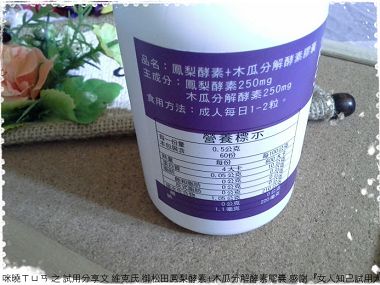 其實御松田鳳梨酵素+木瓜分解酵素膠囊的包裝外觀很簡單,以白色+紫色為主, 瓶身還標識了營養標示,讓消費者更清楚自己吃的是什麼,讓我很安心!