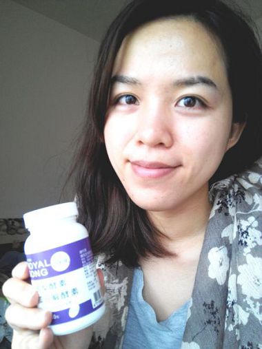 膠囊為白色~ 聞起來沒什麼味道! 而配水吞下去也沒什麼怪味道~ (我是配一杯溫水來實用的歐)