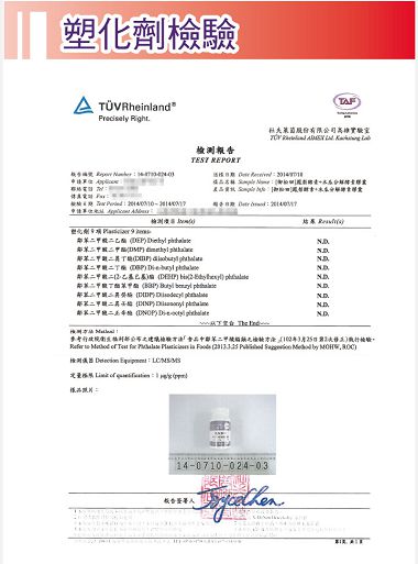 再來呢就是通過塑化劑的檢驗 老實說真的 現在很多東西都好可怕 我們非得仔細看這些檢驗證明才能稍微安心一下呀