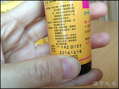 一盒裡面共有6小瓶裝, 每一小瓶上也都貼著跟外盒一樣的標籤, 並建議每日的飲用量為一瓶, 多食無益啊! 最重要的是無論是外盒包裝還是每一小瓶上, 都打印上了產品批號與有效日期。