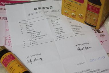 雖然很多都看不懂@@ 不過有這張檢驗證明書,相信消費者喝起來都可以很放心^^