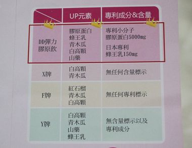 看見康萃美活DD彈力膠原飲 與其他市售的膠原蛋白飲 相比較 明顯勝出 標示又清楚 每天一瓶 讓你UPUP 讓我好期待^^