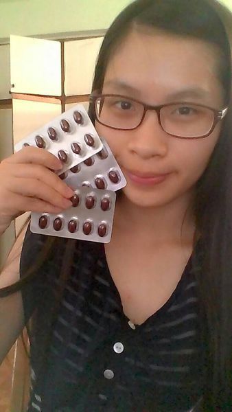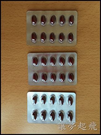 是屬於軟膠囊噢! 用力摳會有點凹下去XD(←好粗魯) 其實這種膠囊式的很適合不敢吃藥粉類的人食用呢!! 像我之前吃的葉黃素就是藥粉類的型態~~