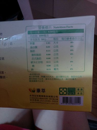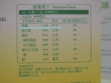 熱量也才1.82大卡喔^^ 好像大部分的營養食品的熱量都不高