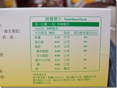 營養成分標示也相當清楚 還附有參考值呢! 覺得很sweet~~~