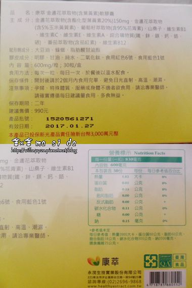 含有金盞花萃取物喔~ 產品說明詳細, 含有多種營養成分, 產品也投保了新光產品責任險!!