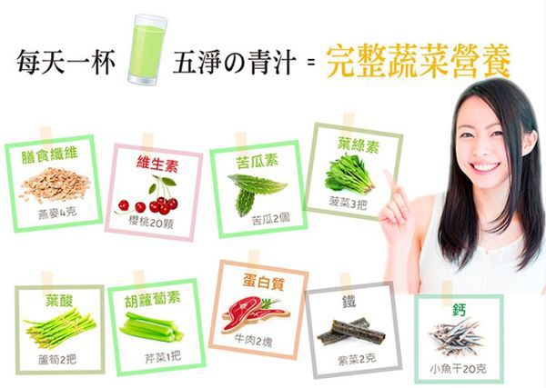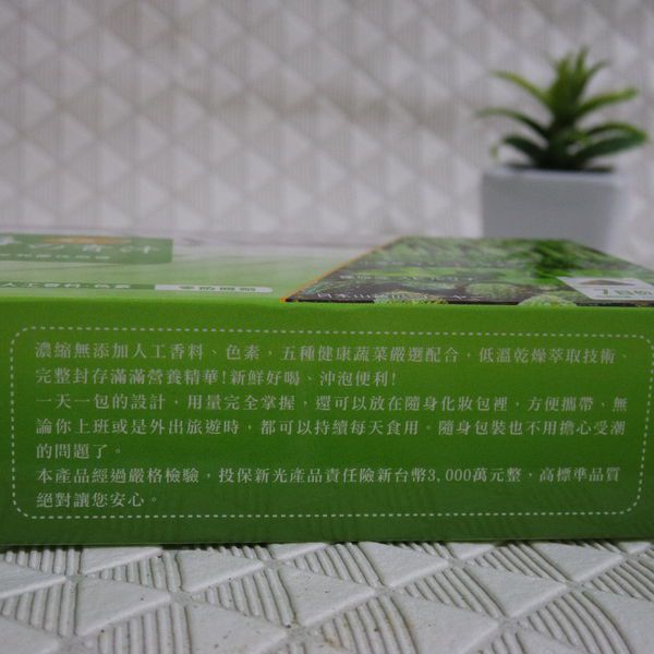 康萃美活系列產品由頂尖生化博士帶領的研發團隊,嚴選高科技、高品質、精純的優質原料 沖繩山苦瓜、美國螺旋藻、日本有機小麥草 五淨青汁將芹菜、蘆筍、小麥草、螺旋藻、日本山苦瓜與多樣水果濃縮成一小包 每天一杯五淨青汁=完整蔬菜營養 (燕麥4克櫻桃20顆苦瓜2顆菠菜3把蘆筍2把芹菜一把牛肉2塊紫菜2克小魚乾20克) 一包熱量只有50大卡,輕卡0脂肪 清楚標示有效日期,並投保了高達3000萬元的產品責任險 這些都是康萃對消費者的用心與負責任的態度