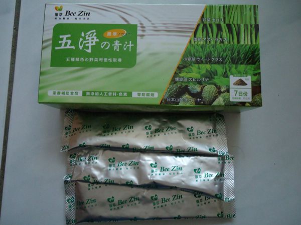 康萃Bee Zin五淨の青汁一盒有7包.每天一包.是一星期的份量 孕婦不可食用.授乳中的婦女.過敏體質.服用藥物者.食用前先諮詢醫藥專業員 本產品含有芒果可能導致過敏症狀