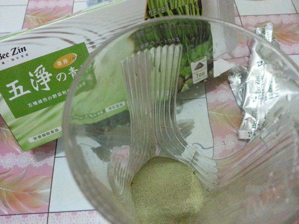 輕輕攪拌均勻,即可飲用 (喝起來有濃濃的青菜味)