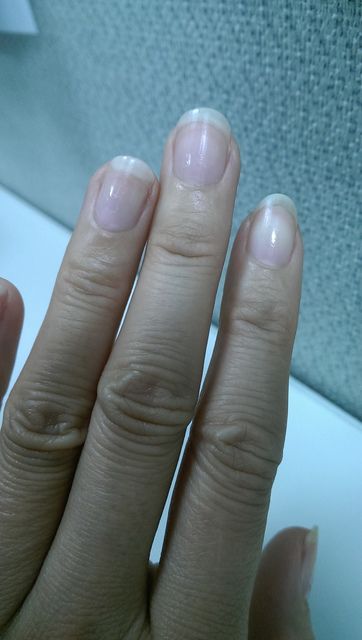 這是未上指緣油 有點慘白無色的指甲~還有乾燥的指緣