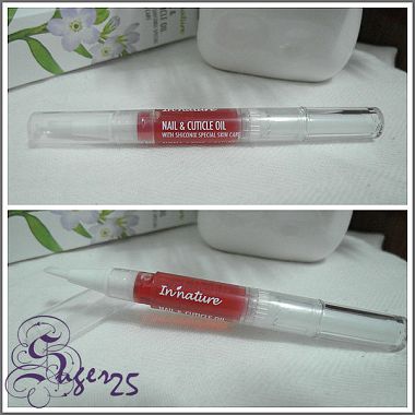 這次~謝謝【女人知己試用大隊】提供的–In'nature紫潤指緣油 一回國,馬上拆封來玩玩看 我的指甲很需要很需要~滋潤 這牌子我之前就很喜歡~ [保養]In’nature紫潤護唇膏,天然萃取植物精油保護肌膚,冬天嘴唇依然水嫩嫩閃閃動人~〃∀〃