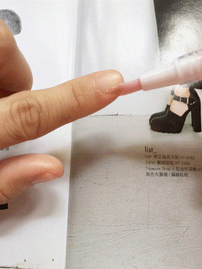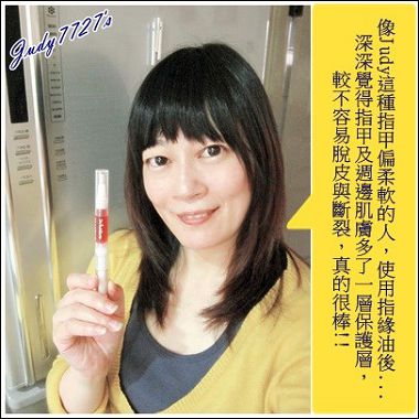 塗抹完可以按摩加以吸收~或直接讓它乾~我個人是覺的都ok! 且擦完指緣的地方有變的比較滑嫩的fu哦!!且指緣似乎更貼合指甲片摟~ 看起來有比較正常~擦上指甲油似乎變美嚕