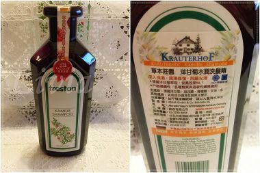謝謝【女人知己試用大隊】提供的"德國草本莊園草本洗髮精" 現在越來越多人會選擇~ 不含矽靈、螢光劑…等等的洗髮精了~ 但是~也因為成份較好,也沒有其它添加化學物…… 這樣的洗髮精也比較貴! 尤其是一家子四五口人~(那如果都是長髮……) 唉……一個月下來……光洗髮精也不便宜! 不過……這次介紹的~~~ "德國 歐森 草本莊園KRÄUTERHOF洋甘菊水潤洗髮精" 就要讓大家為之一亮嘍!! 因為……500ml~最便宜可以到240元左右喔! 而且這還是德國原裝進口的喔!! 但是~價錢是第二!! 重點還是要看它的成份!! 使用天然草本萃取,純淨溫和配方~ 而且親膚性的PH值~"連敏感膚質"或是"幼兒"都可以使用喔! (哈~~我可以和夏用一樣的洗髮精嘍!!) 當然也不含矽靈、螢光劑、parabens~ 主成分~德國洋甘菊、甜沒藥、甘油、水、檸檬酸!! 其中主打的成份"德國洋甘菊"~ 就是以"保濕精華成分~加強保濕效果"為主! 保濕,潤澤,修復,光澤~ 所以適用對象~當然就是只要有頭髮就能用啦!哈…… 有興趣的朋友們,可以直接到官網看詳細說明喔! 德國 草本莊園洋甘菊水潤洗髮精:http://www.osen.com.tw/items 德國 歐森 草本莊園KRÄUTERHOF洋甘菊水潤洗髮精 是完全透明稠狀的液體! 而味道是淡淡的草本香味! 非常有放鬆的感覺! 不過~~像這種草本的洗髮精~ 尤其又不另外添加化學物之類的產品~ 真的不要幻想會有很多的泡泡~ (真的想要很多泡泡,那就去買起泡劑自已加吧!) 我是已經習慣了! 反而一下子能搓出很多泡泡的洗髮精~我才不敢用呢!! 德國 洋甘菊水潤洗髮精~