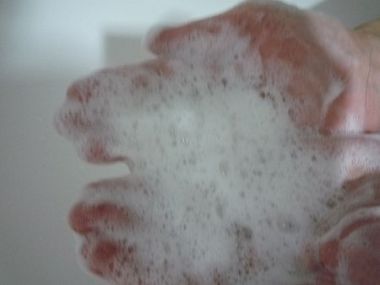加水後以雙手搓揉起泡 白色綿密的泡泡逐漸形成