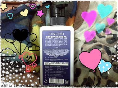 瓶子上面的標貼超美 如果擺在貨架上 一定是最吸眼睛的產品 使用說明 成分 有效日期等 都有清楚的標示在上面喔~可以放心享用 使用方式:取適量Miss Lola精華乳用雙手塗勻 擦拭於身體各部位上
