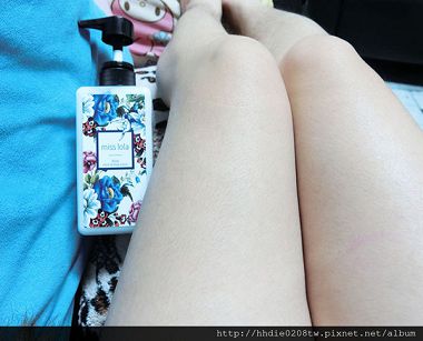晚上洗澡後擦上Miss Lola玫瑰花蕾彈力保濕全效精華乳 肌膚一整晚都處於保濕狀態 我擦身體乳的方式是 自腳踝部位慢慢地往大腿按摩塗勻 除了讓保濕全效精華乳更能充分地被吸收之外 也同步幫腿部按摩獲得舒緩