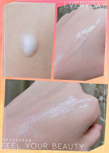 完全不會有黏黏膩膩的感覺,但卻又保有保濕的感覺~~ 擦在手上,有擦的那一邊搭配按摩膚色會提亮而且變的水潤~~