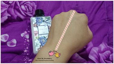 為了讓大家可以清楚明顯看出來他的驚人效果所以擠比較多乳液 它的香味我很愛(因為玫瑰香味是我的菜 哈!!!) 它的香味一般人應該普遍都可以接受