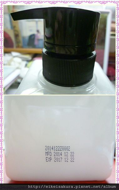 500ml的超大容量 收到時真的有給她吃了一驚~ 容量這麼多~就不用常常買了 彈力保濕全效精華乳以按壓瓶的方式 輕輕地按壓就能取出了 超方便 瓶子上印有保存期限喔~