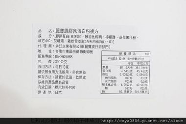 麗寶緹膠原蛋白是日本進口保健食品 雖然說是全日文的外包裝,但是進口商很貼心的有貼了張中文說明的貼紙噢~ °﹒☆°.★。 °﹒☆°.★。 °﹒☆°.★。 °﹒☆°.★。 °﹒☆°.★。 °﹒☆°.★。 裡頭主要成份含有膠原蛋白、維他合C、天然玻尿酸、Q10等... 包裝內容:300g/袋 原產地:日本 營養成份標示也有中文說明 無糖的含量,所以糖尿病患者也可以安心食用噢! 重點是熱量也爆炸低的耶,每10g/38.19cal 完全不用擔心發胖的危機了(尤其是年過三十之後) 食用方法:每日一瓶匙(約10公克)
