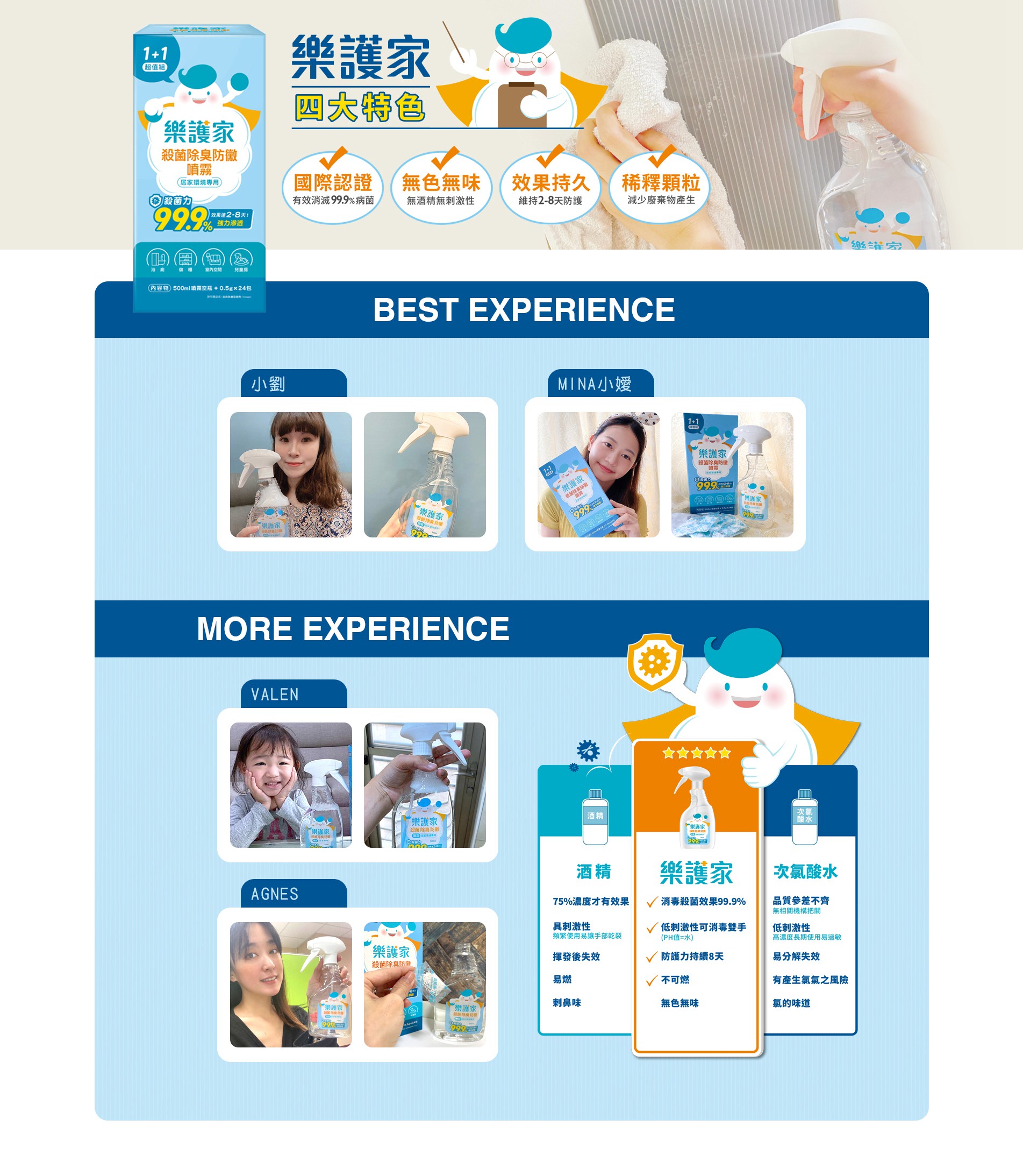 樂護家殺菌除臭防黴噴霧對於家有老小、嬰幼童或寵物的生活環境,甚至隔離者都適用,