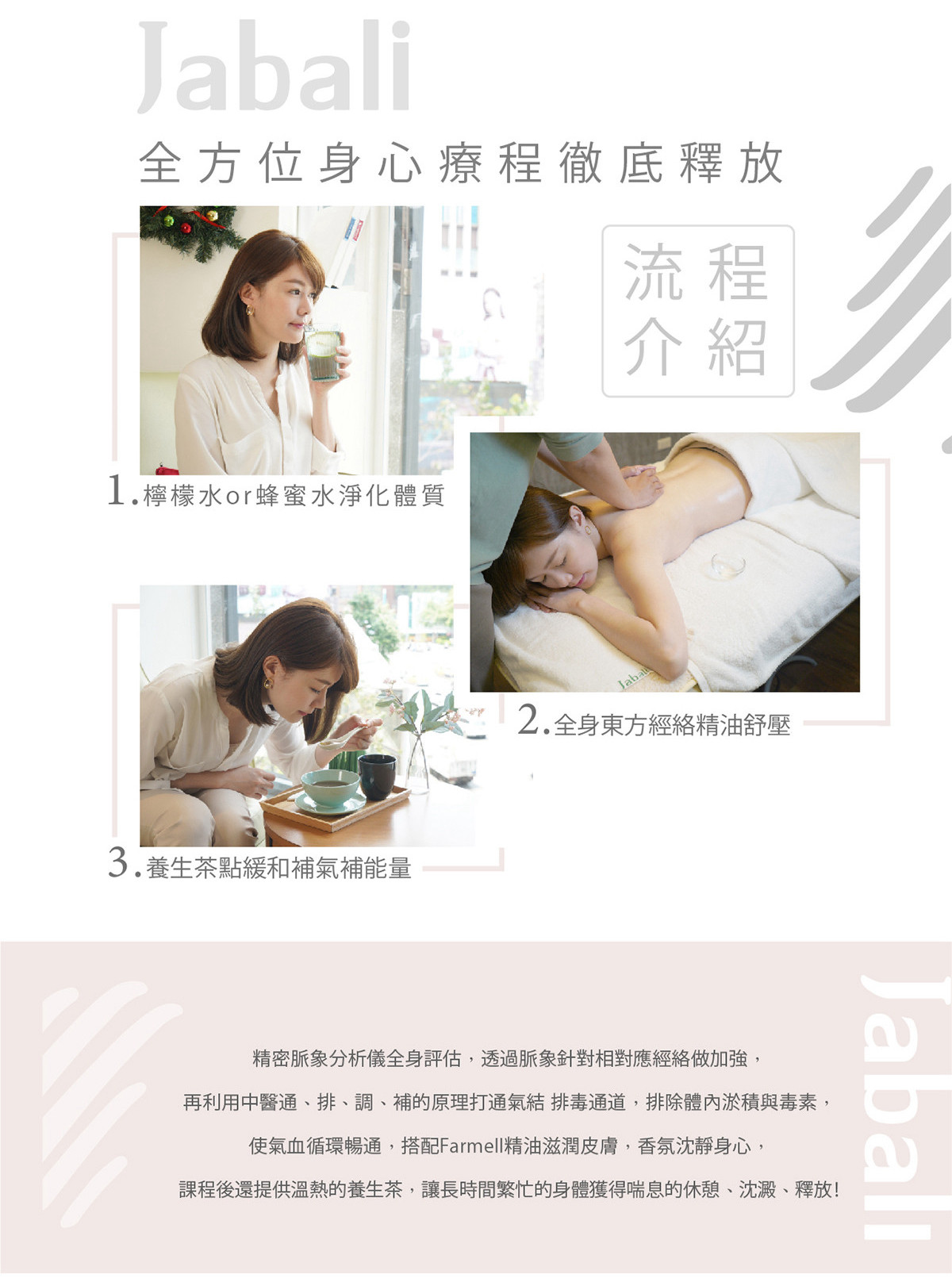 jabali 佳寶麗「十二經絡全身舒壓」 : 首次體驗價 50分鐘 $988 ![女人知己試用大隊,口碑行銷,部落客行銷,Jabali 佳寶麗複合式美容美髮養護會所,Jabali 佳寶麗十二經絡全身紓壓按摩,jabali 佳寶麗,jabali,佳寶麗,十二經絡按摩,增加氣血循環,氣色紅潤,解除疲勞,臉部999黃金課程,頭皮養護課程,健康養身,spa]()