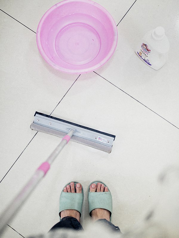 只需將適量清潔劑倒入水中稀釋,再用拖把或抹布擦拭地板即可!