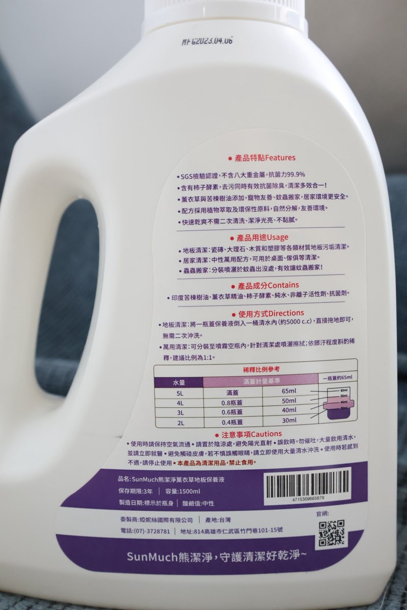 「SunMuch熊潔淨 薰衣草地板保養液」一罐有1500ml,不佔空間好收納,用量上也非常省呢 → CP值很高 ✨