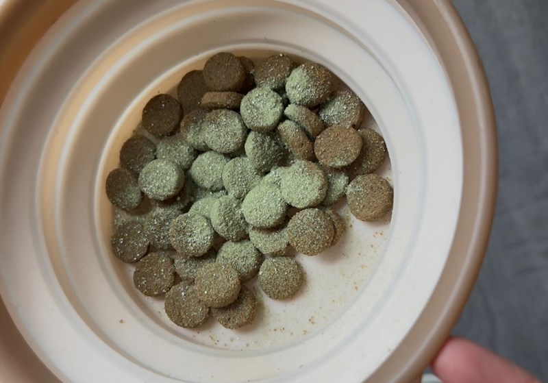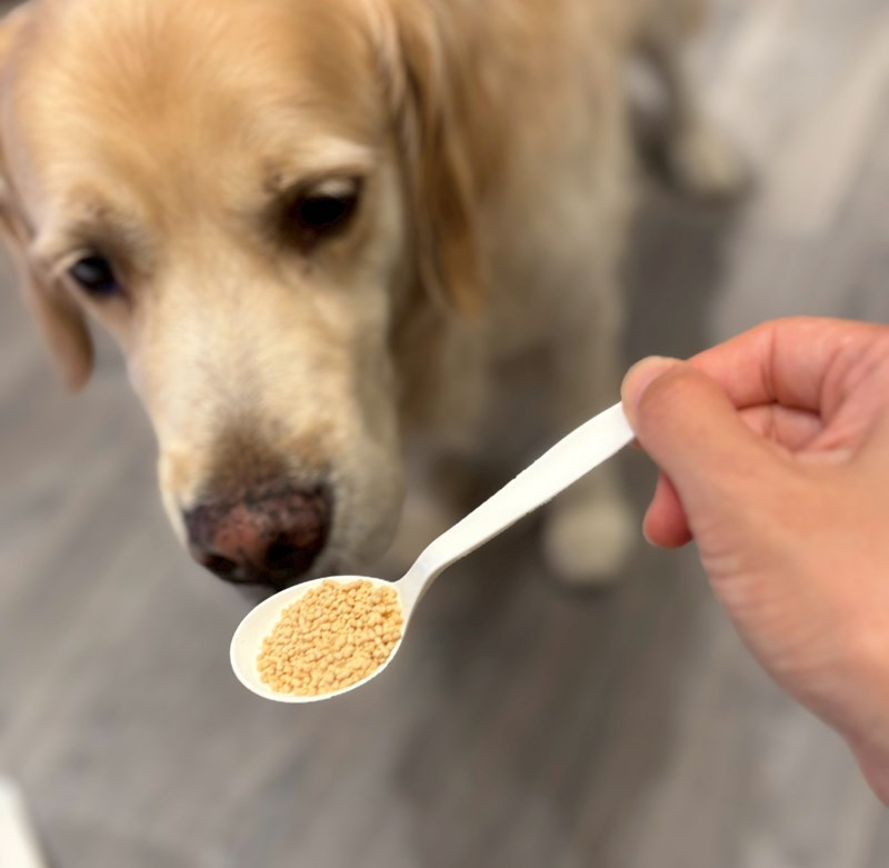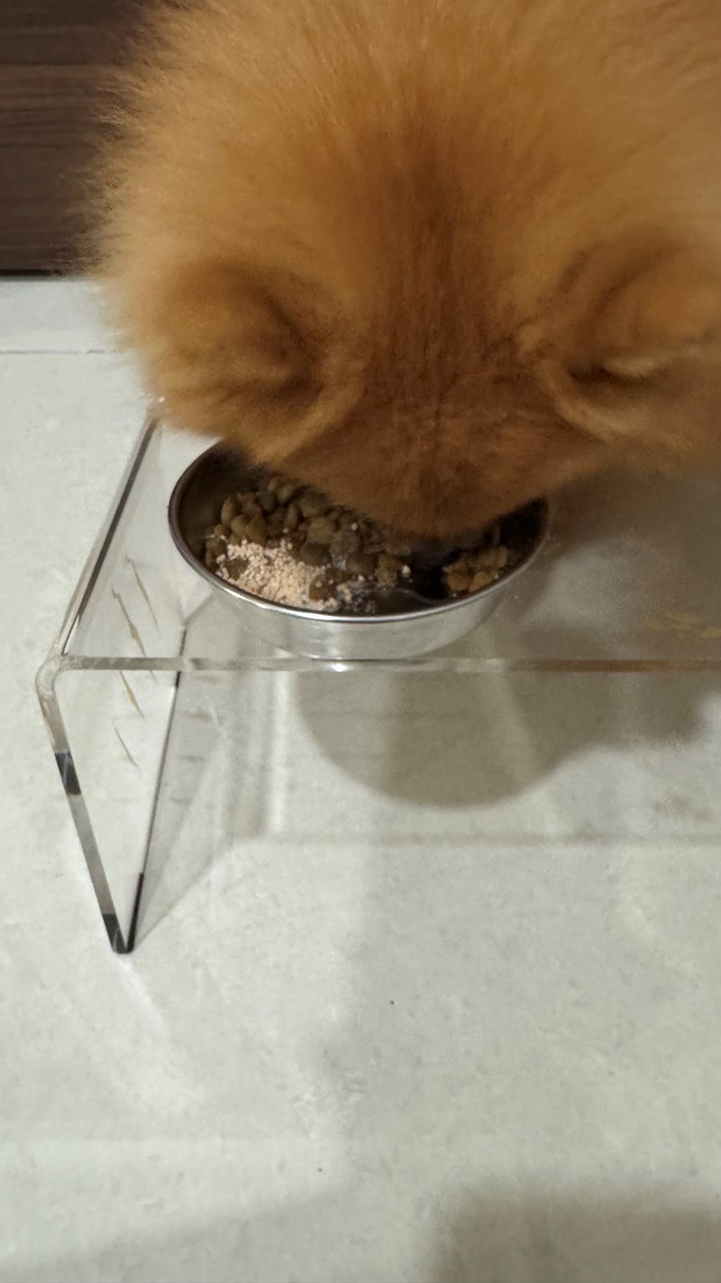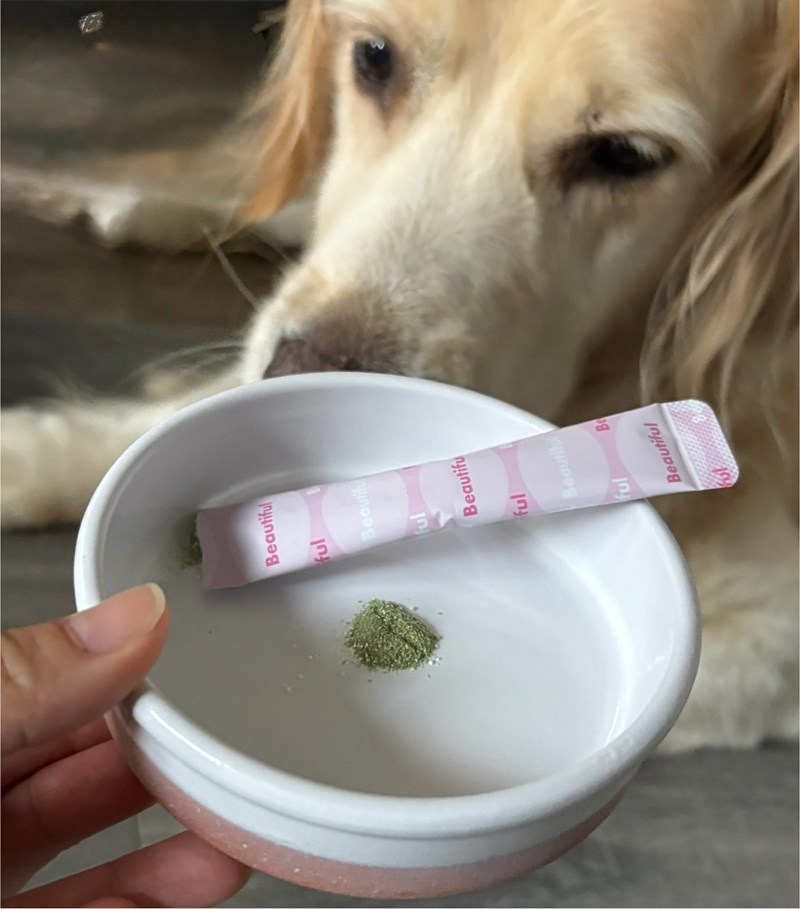 我都直接加在飼料讓阿福食用,切記!請勿添加溫熱水食用喔~