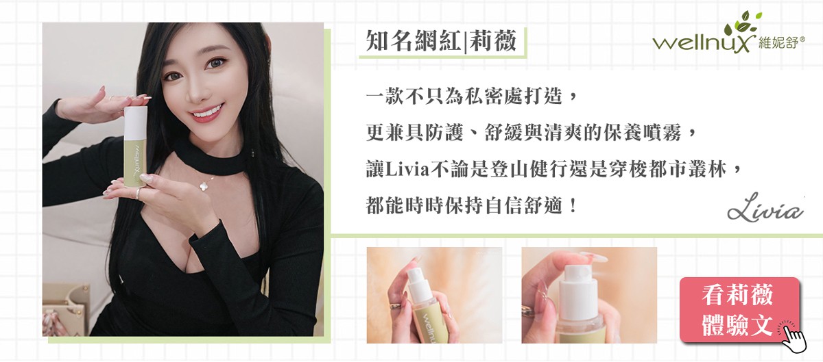 ![女人知己試用大隊,口碑行銷,部落客行銷,WellnuX 維妮舒 NV5⁺原液芬露,WellnuX維妮舒,安全親密關係,友善母嬰,舒緩不適,私密肌保養,植萃成份,正常分泌物,絲滑有感,NV5+專利整合配方,異味Bye,修護肌膚,肌膚不乾澀,肌膚安全性實驗,提前預防更年困擾]()