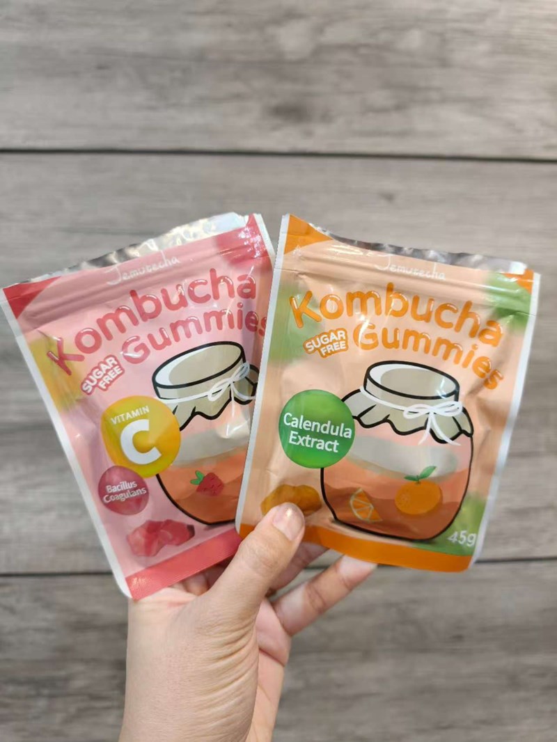 『Jemutecha 康普茶無糖軟糖』推出了兩款口味:「莓果」和「橙子」