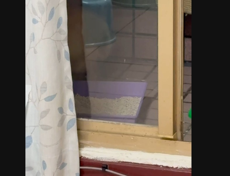 貓咪很好奇多事通常換貓砂這種環節一定會來監視貓奴的倒砂儀式,