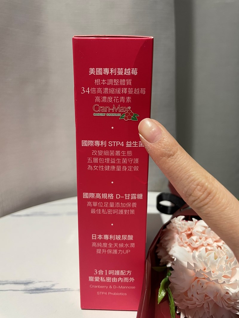 這款產品結合了蔓越莓、甘露糖、益生菌與聖潔莓,對我來說就是很貼近女性需求的組合。